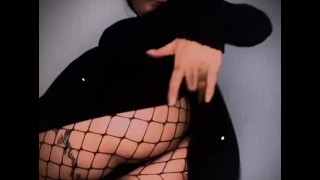 A slut in a dress masturbates